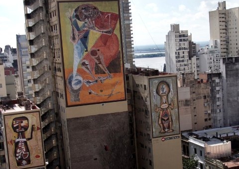 Este inédito museo al aire libre está integrado por obras de artistas rosarinos reproducidas a escala gigante en medianeras de distintos edificios, delineando circuitos que permiten observar cuadros mientras se pasea por la ciudad.